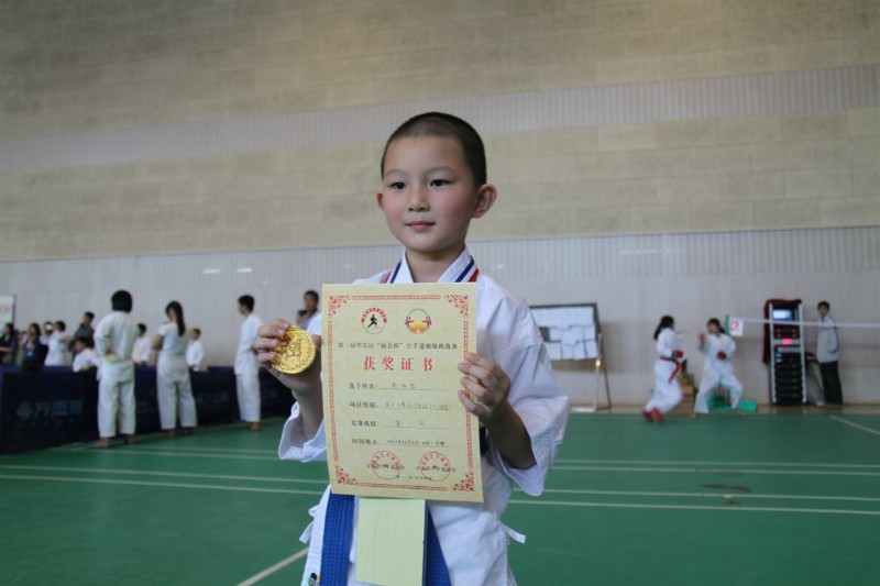 DB真人 空手道代表队选手安医大附小一(2)班余雨若同学为DB真人 代表队夺得首枚金牌