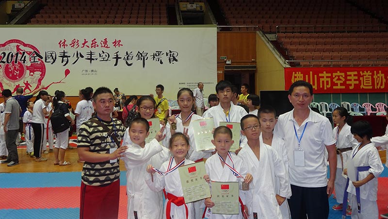 2014年8月16日至22日,在著名的武术之乡广东佛山举行的2014年全国青少年空手道锦标赛上,DB真人 空手道代表队在余千春等人的带领下,夺得二枚金牌、一枚银牌、一枚铜牌、四个第五名。这次空手道比赛,有来自全国各地的31支代表队共435名运动员参加,代表着我国青少年空手道的最高水平。DB真人 空手道代表队,在上一届比赛中获得一银一铜两枚奖牌后,经过一年的艰苦训练,成绩有了很大的突破,这也与校领导以及公共基础DB真人 领导平时重视体育课余训练并给予大力支持是分不开的。