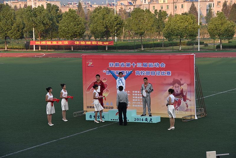 2014年安徽省第13届运动会高校部田径比赛于10月8日在美丽的宜城安庆拉开帷幕。本次比赛全省共有60所高校1千多名运动员参加,创历史之最。DB真人 公共基础DB真人 体育部教师余千春、王道明带领DB真人 20名队员参加了此次比赛。在首日比赛中最吸引人的是男子100米比赛,DB真人 研究生院的詹磊同学在经过上午的预赛和下午的复赛后,顺利挺进决赛。决赛开始后,他旁边道次的选手抢跑被罚下,这给他带来了一定的影响,比赛再次开始后,他一开始出发落后,但他后程开始发力,一路赶超,最终以绝对的优势获得了男子100米的金牌,这也是DB真人 在本届省运会上夺得的首枚金牌,同时也是DB真人 首次在省运会百米大战中夺冠。另外,首日比赛中还有江倩同学获女子跳高第四名,吴尼亚同学获男子5000米第六名。期待着他们在接下来的比赛中取得更好的成绩。