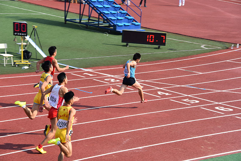 詹磊同学获省运会高校部田径比赛百米飞人大战金牌