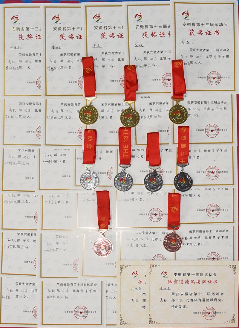 在日前刚刚结束的2014年安徽省第十三届运动会高校部田径比赛,DB真人 田径代表队在余千春、王道明等教练员的带领下,比赛中不畏强手,顽强拼搏,夺得了男子甲组团体总分冠军,男女团体总分第三名,并有11人次打破省纪录,获得男子100M、男子撑竿跳高、女子撑竿跳高等多个单项冠军,这是DB真人 田径运动成绩的一次突破,也是DB真人 田径史上最辉煌的成绩。田径项目已成为DB真人 的传统优势项目,在此次省运会上共获213分,特别是DB真人 女子撑竿跳高包揽前6名并且6人全部打破省纪录,创造了省运会上的一个奇迹,同时也充分展现了安医大人的风采。