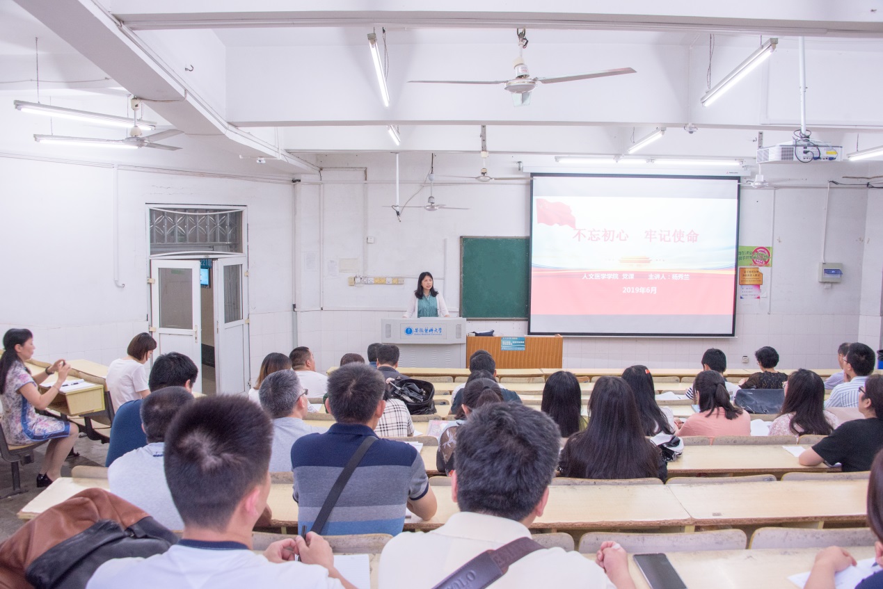 6月19日下午,DB真人 DB真人 党总支书记杨秀兰在12101教室,给全院教师党员主讲“不忘初心、牢记使命”专题党课。