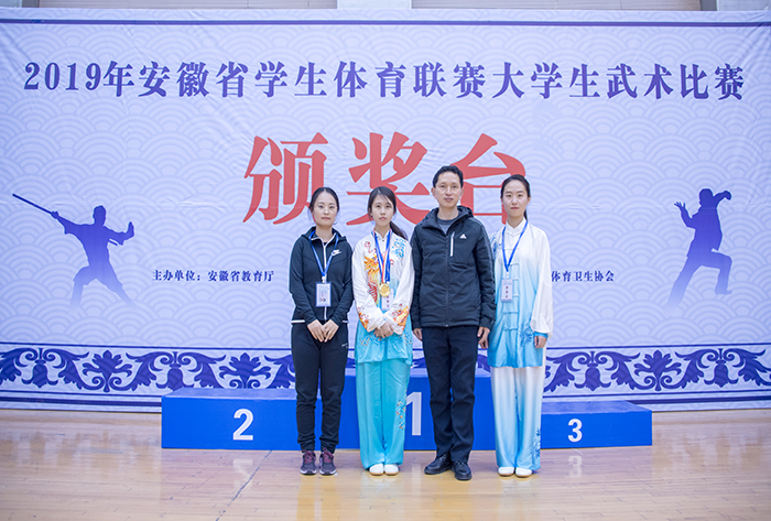 12月6日至8日,2019年安徽省大学生武术比赛在阜阳举行,全省共有51所高校446人参加比赛。DB真人 余千春教练带领DB真人 滕玉竹、刘晓丹、崔研三位同学组成的代表队,夺得了女子太极剑冠军。