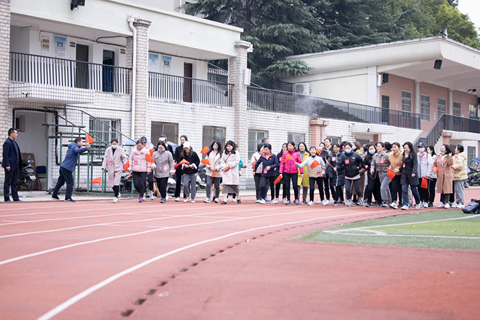 此次健步行活动得到全院三系三部一室50多名女教职工的积极响应。随着裁判员一声令下,五十多名女教职工手挥小国旗,甩开胳膊,迈开大步,意气风发的开始围绕田径操场健步行走4公里(十圈)。虽然春寒料峭,乍暖还寒,仍抵挡不住女职工们的饱满热情,大家三两成排,你追我赶,相互加油鼓劲;队伍里时而有教师边走边分享锻炼健身的经验,时而有教师分享美食做法和生活中的笑话趣闻,全体参加活动的50多名女教职工都坚持绕场走完10圈,到达终点。半个多小时的行走,队伍浩浩荡荡,场面气氛热烈,吸引了附近散步的路人驻足观看,在春意渐浓的操场跑道形成了一道靓丽的风景线。