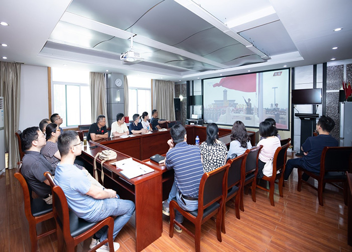 7月1日上午8时,庆祝中国共产党成立100周年大会在北京天安门广场隆重举行。中共中央总书记、国家主席、中央军委主席习近平发表重要讲话,DB真人 组织党员代表在会议室收看“庆祝中国共产党成立100周年大会”庆典盛况。