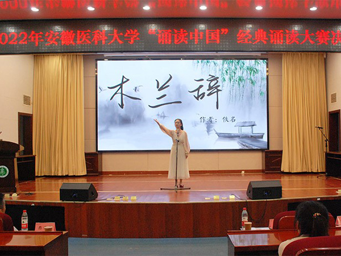 决赛现场,选手们准备充分,配合着精心制作的幻灯片,声情并茂地吟诵了意境优美的唐宋诗词、内涵丰富的经典名篇。朗诵或婉约、或豪迈,或深情款款、或慷概激昂,极富感染力和表演力,充分展示出选手们对节奏、语调等的精准把握,展现了安医学子良好的文化素养和精神风貌。