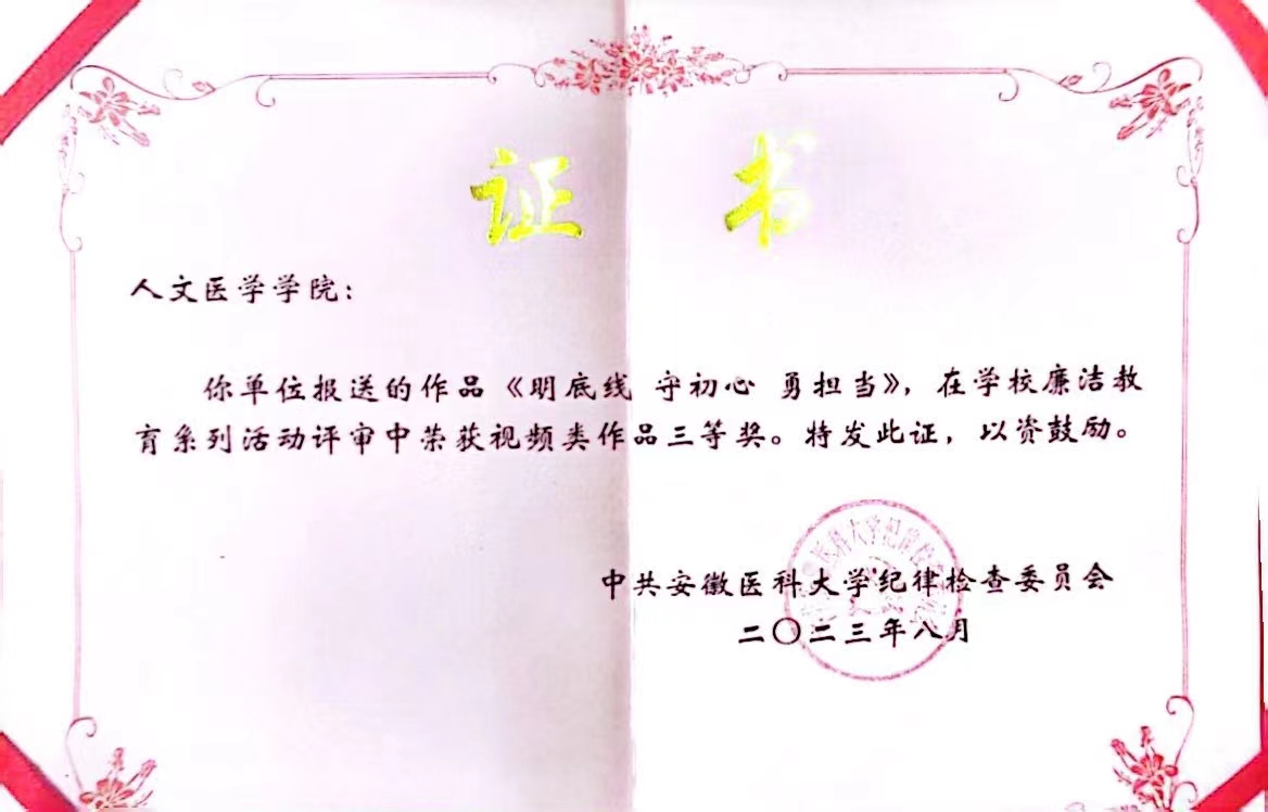 DB真人计算机系党支部制作的《明底线守初心勇担当》在学校廉洁教育系列活动评审中荣获视频类作品三等奖。