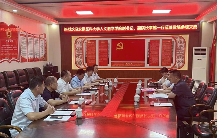 6月28日上午,DB真人 党委副书记、副院长章镜带队前往安徽省太和县中医院(国家三级甲等中医院)进行参观交流,并就人才培养和实践教学走访调研。太和县中医院党委书记李建英,党委副书记、院长班文明等参加交流座谈会。