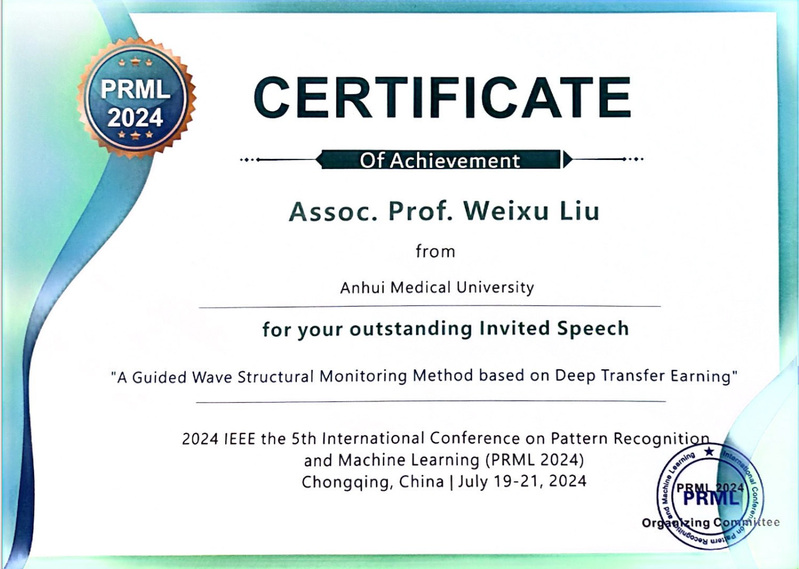 近日,第五届IEEE模式识别与机器学习国际会议(2024 IEEE the 5th International Conference on Pattern Recognition and Machine Learning,PRML 2024)在重庆召开。本次会议采取线上线下相结合的方式举行,来自美国、澳大利亚、英国、印度、马来西亚、泰国等6国及全国各省市100余位专家学者参加。DB真人柳伟续副教授受邀担任本次会议Technical Committee、Session Chair并作大会邀请报告《A guided wave structural monitoring method based on deep transfer learning》。围绕模式识别与机器学习相关主题,本次大会共有5个邀请报告、45个演讲报告、16份海报等展示内容。