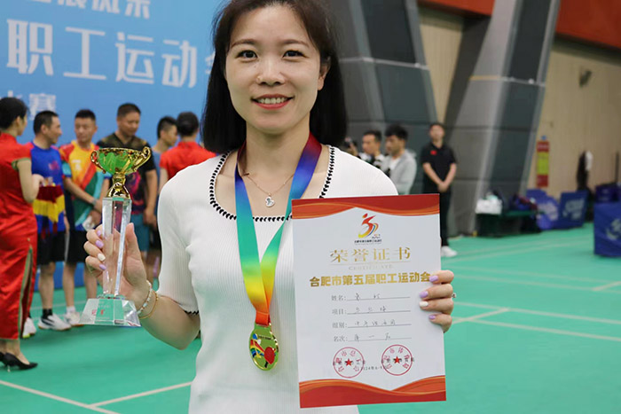 近日,合肥市第五届职工运动会乒乓球比赛在合肥经开区李宁体育园顺利举办,体育教学部职工袁玎代表学校被选拔参加经开区总工会中年组女子团体乒乓球比赛,勇夺团体一等奖。