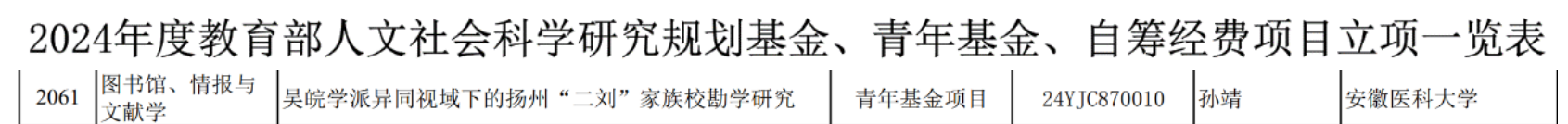 近日,教育部社科司发布了2024年度教育部人文社会科学研究项目立项通知,DB真人孙靖博士凭借其研究项目《吴皖学派异同视域下的扬州“二刘”家族校勘学研究》成功获批立项。此次成功立项体现了孙靖博士在人文社会科学领域的造诣,也彰显了DB真人 在推动学术研究、促进知识创新方面的不懈努力。