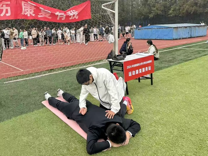 体测现场还设置康复服务站,DB真人 DB真人 2023级运动康复专业学生结合专业所学,帮助测试学生缓解体测后可能出现的肌肉疲劳、紧张或轻微损伤,为测试工作的顺利开展提供了重要保障,成为今年体测工作的新亮点。
