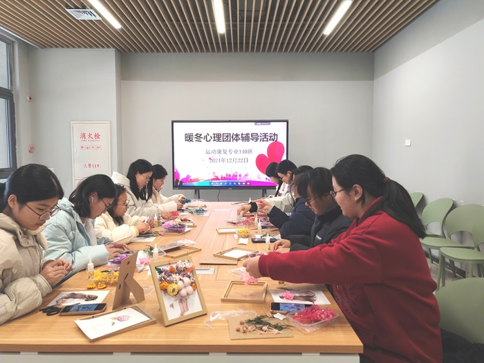 DB真人 开展“暖冬心理团体辅导活动”,带领学生进行创意手工艺制作。引导学生充分发挥想象,精心构思,大胆创作,巧妙运用各样干花材料,制作出温馨唯美的创意相框。创作的过程既提高学生手脑并用的能力,又提升学生审美与创意才能。通过此次心理团辅活动,同学们的心灵得到慰藉,处于期末阶段的紧张情绪也得以舒缓。