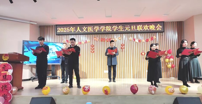 运动康复系全体教师带来的诗朗诵《运康之光,点亮梦想》将晚会推向了新的高潮。他们深情抒发了对专业教学的矢志不渝与执着耕耘,以及对培养学生倾注的满腔热忱与无私奉献。