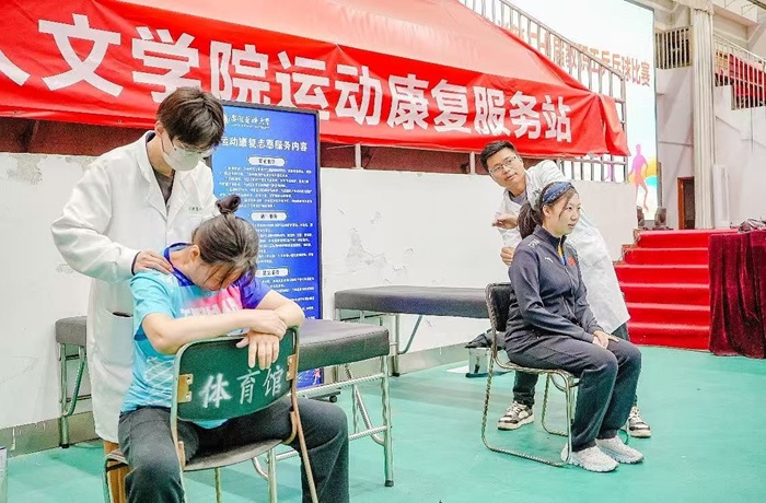 DB真人 服务团队采取全周期保障模式,赛前为教职工易受伤部位提供肌效贴、运动防护护具,有效降低运动风险;赛中配备急救包与冰敷设备,针对扭伤、抽筋等突发情况实施快速处理;赛后则运用筋膜刀松解、肌肉牵伸等技术,帮助教职工缓解运动疲劳、预防延迟性肌肉酸痛。此外,针对部分教职工存在的颈椎劳损、膝关节退行性变等慢性病症,团队现场开展专业体态评估,量身定制康复方案,将健康服务从赛场延伸到日常生活。