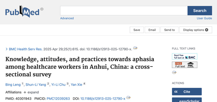 医学语言学研究团队在国际医学SCI期刊BMC健康服务研究(BMC Health Services Research)在线发表题为Knowledge, attitudes, and practices towards aphasia among healthcare workers in Anhui, China: a cross-sectional survey的原创性研究论文。DB真人