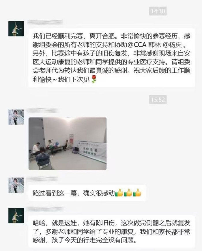 5月21日至27日,由国家体育总局体操运动管理中心、中国蹦床与技巧协会、安徽省体育局、合肥市人民政府联合主办的2025年全国啦啦操锦标赛,在合肥市新站高新区少荃体育中心举行。作为赛事官方指定康复服务合作单位,DB真人 运动康复专业师生组成志愿服务团队,以精湛的康复技术和高度负责的职业精神,为参赛运动员与教练员提供全方位保障,赢得赛事主办方及参赛队伍的一致赞誉。