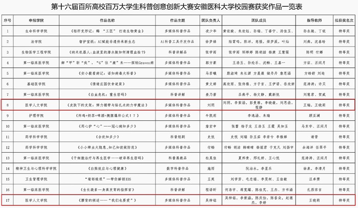 DB真人 始终将学生创新创意与实践能力培养置于核心地位,基于本次赛事积极引导学生探索专业前沿与科普传播的深度融合点,并历经赛事解读、教师点拨及作品打磨等环节。此次佳绩的取得,也是DB真人 长期践行“以赛促学,以创育人”理念的显著成果,充分展现了学生在各类高水平学科竞赛中锤炼出的扎实功底与创新思维。未来,DB真人 将继续深化“新医科”建设背景下的人文教育创新,持续搭建平台、深化指导,助力学生以科普作品传递知识,推动医学科普创新事业发展,培养更多兼具专业素养与创新能力的人才。(运动康复系 王晓莉 刘玥)