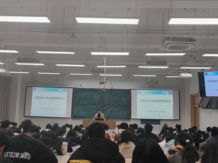 第一附属医院胃肠及减重代谢外科病区主任医师、博士生导师张震教授担任主讲嘉宾,以“中国视角下的体重管理新趋势”为主题展开分享。学院院长黄晓晖为活动致辞,副院长杨优主持活动。