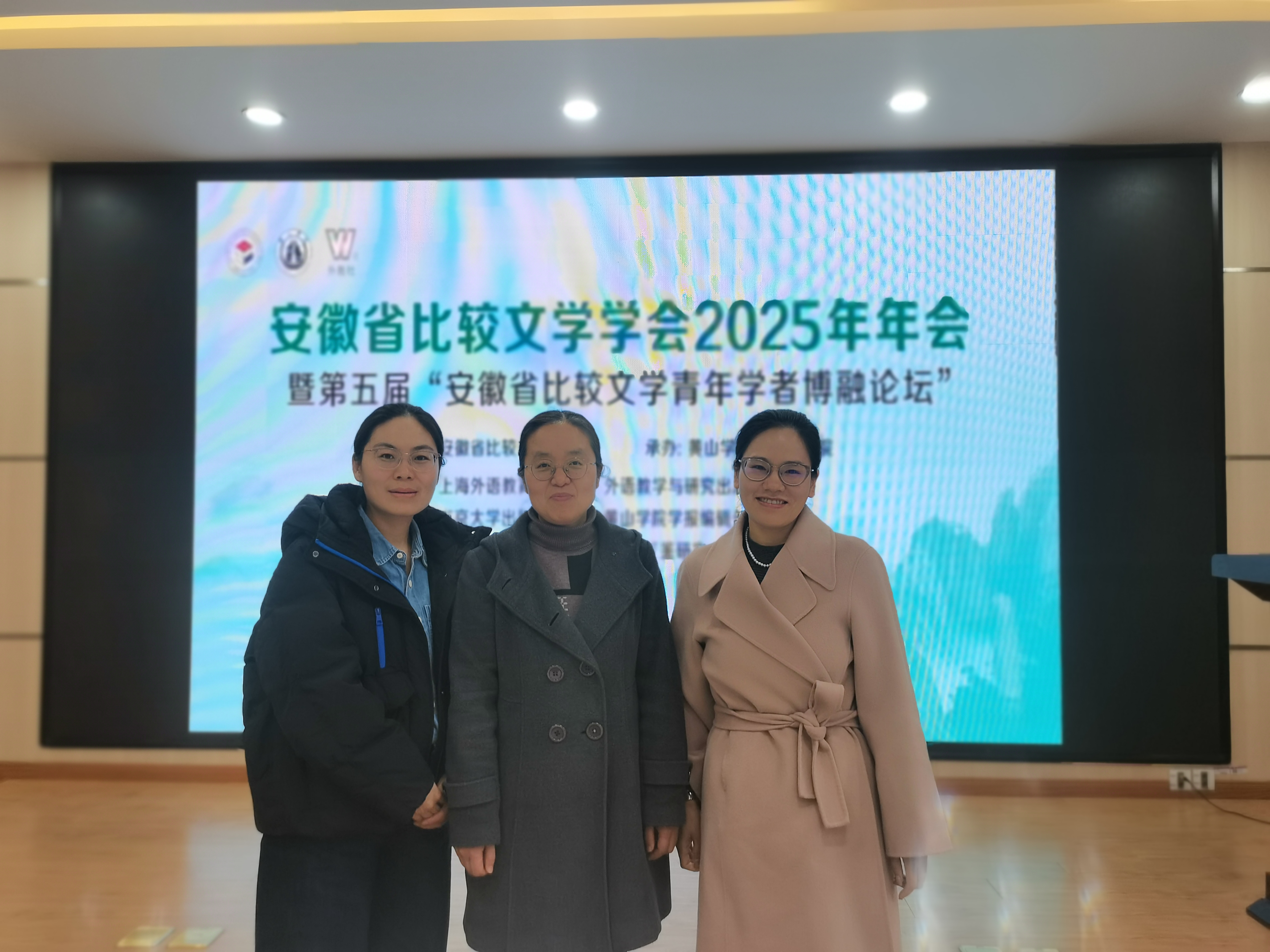 2025年12月19-21日,安徽省比较文学学会2025年年会暨第五届“安徽省比较文学青年学者博融论坛”在我省黄山市举行,我系刘维静、计红丽、万琼老师参会交流。